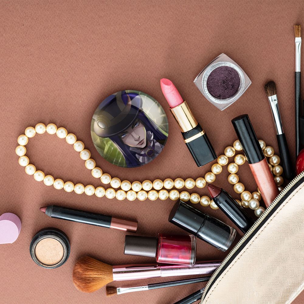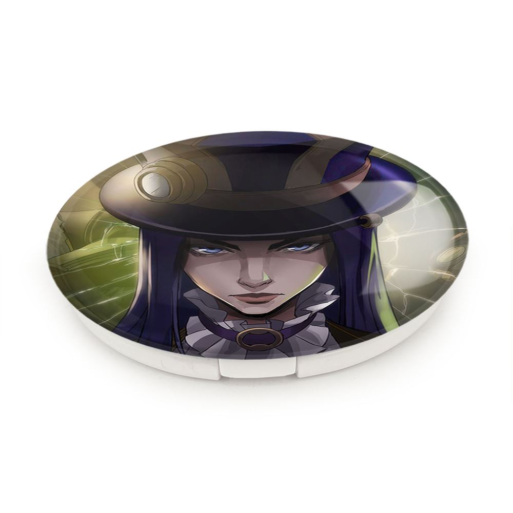 آینه های تاشو کیتلین وای جیس آرکین خندالو، از جنس پلاستیک فشرده ABS تولید شده و به رنگ سفید می باشد. یکی از آینه ها ابعاد واقعی را نشان داده و دیگری با قابلیت بزرگنمایی، جزئیات را بهتر نمایش می دهد. ابعاد هر یک از آینه ها، دایره ای به قطر 7.5 سانت می باشد که نه خیلی بزرگ و غیر قابل استفاده در کیف آرایشی ست و نه خیلی کوچک که تصویر خاصی در آن مشاهده نشود. آینه تاشو کیتلین وای جیس آرکین سایزی استاندارد و کارآمد دارد و در هر کیفی جا میگیرد. چاپ طرح بوسیله چاپگرهای دیجیتال شش رنگ با شفافیت و کیفیتی مثال زدنی بر روی یک وجه از بدنه ی آینه انجام گرفته و با روکش لمینت حرارتی پوشیده شده که در مقابل آسیب و خط و خش مقاوم بوده و کیفیت بالایی دارد. درب آینه بوسیله قفل بدنه ی آن، باز نمی ماند و کاملا بسته می شود و مناسب قرار گیری در کیف لوازم آرایش و کیف های کوچک دستی نیز هست. آینه های تاشو کیتلین وای جیس آرکین خندالو با تنوع طرحی بسیار بالا، سلیقه هر نوع مخاطبی را تامین میکند.
