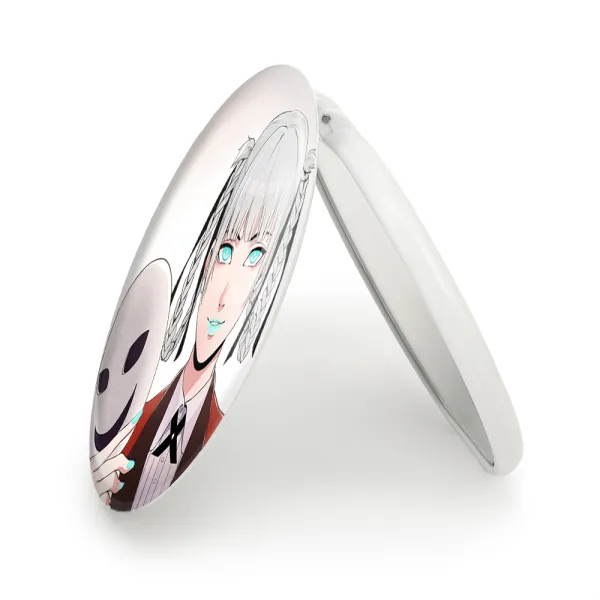 آینه های تاشو کیراری انیمه قمارباز خندالو، از جنس پلاستیک فشرده ABS تولید شده و به رنگ سفید می باشد. یکی از آینه ها ابعاد واقعی را نشان داده و دیگری با قابلیت بزرگنمایی، جزئیات را بهتر نمایش می دهد. ابعاد هر یک از آینه ها، دایره ای به قطر 7.5 سانت می باشد که نه خیلی بزرگ و غیر قابل استفاده در کیف آرایشی ست و نه خیلی کوچک که تصویر خاصی در آن مشاهده نشود. آینه تاشو کیراری انیمه قمارباز سایزی استاندارد و کارآمد دارد و در هر کیفی جا میگیرد. چاپ طرح بوسیله چاپگرهای دیجیتال شش رنگ با شفافیت و کیفیتی مثال زدنی بر روی یک وجه از بدنه ی آینه انجام گرفته و با روکش لمینت حرارتی پوشیده شده که در مقابل آسیب و خط و خش مقاوم بوده و کیفیت بالایی دارد. درب آینه بوسیله قفل بدنه ی آن، باز نمی ماند و کاملا بسته می شود و مناسب قرار گیری در کیف لوازم آرایش و کیف های کوچک دستی نیز هست. آینه های تاشو کیراری انیمه قمارباز خندالو با تنوع طرحی بسیار بالا، سلیقه هر نوع مخاطبی را تامین میکند.
