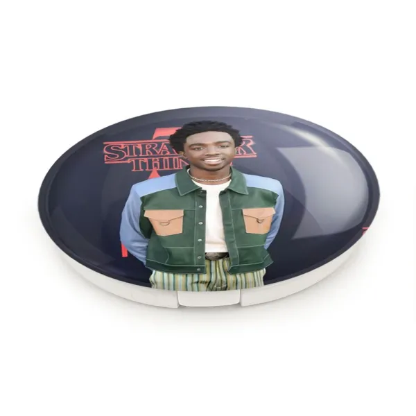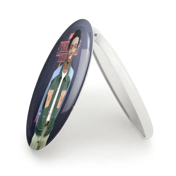 آینه های تاشو کیلب سریال استرنجر تینگز Stranger Things خندالو، از جنس پلاستیک فشرده ABS تولید شده و به رنگ سفید می باشد. یکی از آینه ها ابعاد واقعی را نشان داده و دیگری با قابلیت بزرگنمایی، جزئیات را بهتر نمایش می دهد. ابعاد هر یک از آینه ها، دایره ای به قطر 7.5 سانت می باشد که نه خیلی بزرگ و غیر قابل استفاده در کیف آرایشی ست و نه خیلی کوچک که تصویر خاصی در آن مشاهده نشود. آینه تاشو کیلب سریال استرنجر تینگز Stranger Things سایزی استاندارد و کارآمد دارد و در هر کیفی جا میگیرد. چاپ طرح بوسیله چاپگرهای دیجیتال شش رنگ با شفافیت و کیفیتی مثال زدنی بر روی یک وجه از بدنه ی آینه انجام گرفته و با روکش لمینت حرارتی پوشیده شده که در مقابل آسیب و خط و خش مقاوم بوده و کیفیت بالایی دارد. درب آینه بوسیله قفل بدنه ی آن، باز نمی ماند و کاملا بسته می شود و مناسب قرار گیری در کیف لوازم آرایش و کیف های کوچک دستی نیز هست. آینه های تاشو کیلب سریال استرنجر تینگز Stranger Things خندالو با تنوع طرحی بسیار بالا، سلیقه هر نوع مخاطبی را تامین میکند.