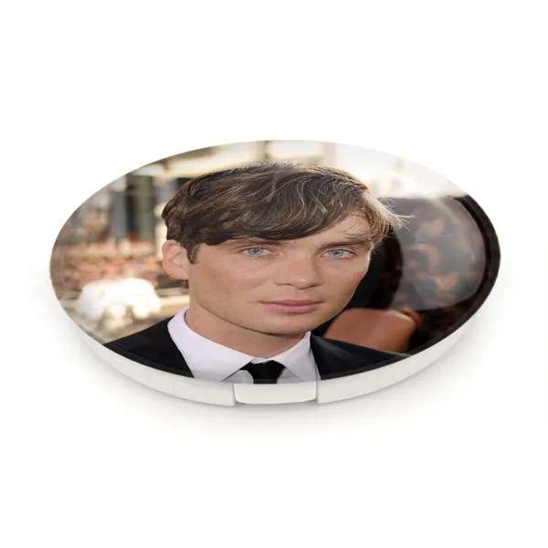 آینه های تاشو کیلین مورفی سریال پیکی بلایندرز Peaky Blinders خندالو، از جنس پلاستیک فشرده ABS تولید شده و به رنگ سفید می باشد. یکی از آینه ها ابعاد واقعی را نشان داده و دیگری با قابلیت بزرگنمایی، جزئیات را بهتر نمایش می دهد. ابعاد هر یک از آینه ها، دایره ای به قطر 7.5 سانت می باشد که نه خیلی بزرگ و غیر قابل استفاده در کیف آرایشی ست و نه خیلی کوچک که تصویر خاصی در آن مشاهده نشود. آینه تاشو کیلین مورفی سریال پیکی بلایندرز Peaky Blinders سایزی استاندارد و کارآمد دارد و در هر کیفی جا میگیرد. چاپ طرح بوسیله چاپگرهای دیجیتال شش رنگ با شفافیت و کیفیتی مثال زدنی بر روی یک وجه از بدنه ی آینه انجام گرفته و با روکش لمینت حرارتی پوشیده شده که در مقابل آسیب و خط و خش مقاوم بوده و کیفیت بالایی دارد. درب آینه بوسیله قفل بدنه ی آن، باز نمی ماند و کاملا بسته می شود و مناسب قرار گیری در کیف لوازم آرایش و کیف های کوچک دستی نیز هست. آینه های تاشو کیلین مورفی سریال پیکی بلایندرز Peaky Blinders خندالو با تنوع طرحی بسیار بالا، سلیقه هر نوع مخاطبی را تامین میکند.