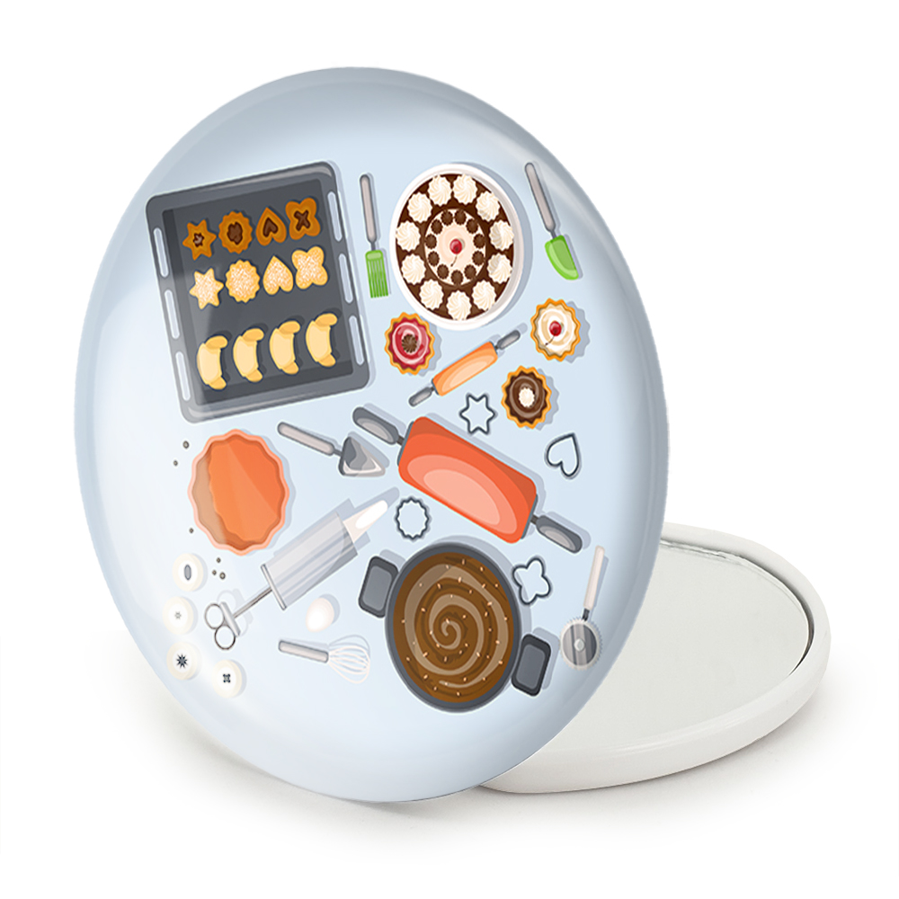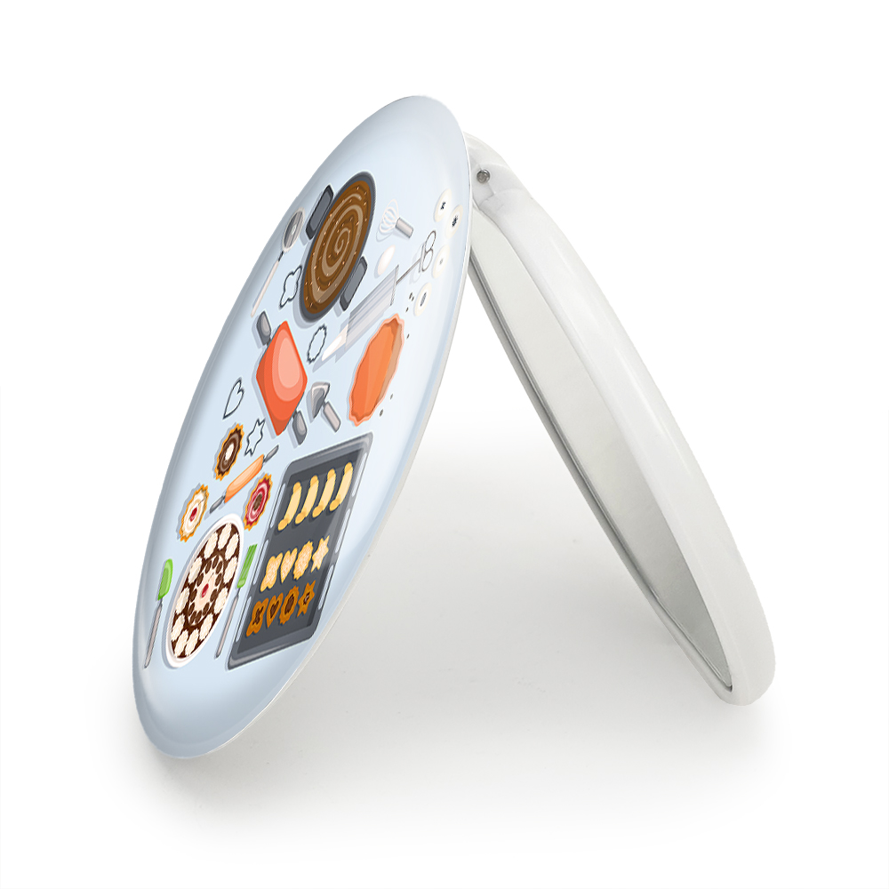 آینه های تاشو کیک و شیرینی پزی خندالو، از جنس پلاستیک فشرده ABS تولید شده و به رنگ سفید می باشد. یکی از آینه ها ابعاد واقعی را نشان داده و دیگری با قابلیت بزرگنمایی، جزئیات را بهتر نمایش می دهد. ابعاد هر یک از آینه ها، دایره ای به قطر 7.5 سانت می باشد که نه خیلی بزرگ و غیر قابل استفاده در کیف آرایشی ست و نه خیلی کوچک که تصویر خاصی در آن مشاهده نشود. آینه تاشو کیک و شیرینی پزی سایزی استاندارد و کارآمد دارد و در هر کیفی جا میگیرد. چاپ طرح بوسیله چاپگرهای دیجیتال شش رنگ با شفافیت و کیفیتی مثال زدنی بر روی یک وجه از بدنه ی آینه انجام گرفته و با روکش لمینت حرارتی پوشیده شده که در مقابل آسیب و خط و خش مقاوم بوده و کیفیت بالایی دارد. درب آینه بوسیله قفل بدنه ی آن، باز نمی ماند و کاملا بسته می شود و مناسب قرار گیری در کیف لوازم آرایش و کیف های کوچک دستی نیز هست. آینه های تاشو کیک و شیرینی پزی خندالو با تنوع طرحی بسیار بالا، سلیقه هر نوع مخاطبی را تامین میکند.