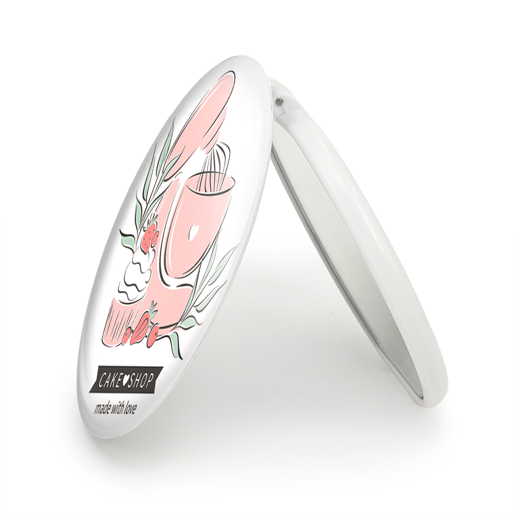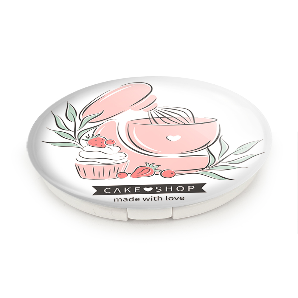 آینه های تاشو کیک و شیرینی پزی خندالو، از جنس پلاستیک فشرده ABS تولید شده و به رنگ سفید می باشد. یکی از آینه ها ابعاد واقعی را نشان داده و دیگری با قابلیت بزرگنمایی، جزئیات را بهتر نمایش می دهد.