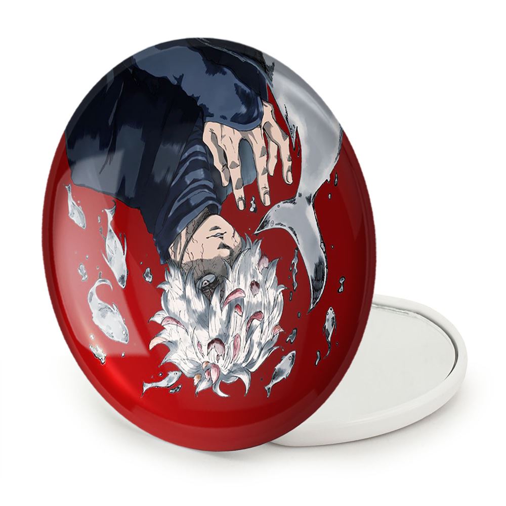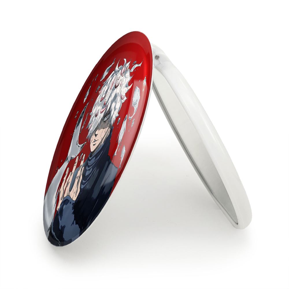 آینه های تاشو گابیمارو انیمه بهشت جهنمیان خندالو، از جنس پلاستیک فشرده ABS تولید شده و به رنگ سفید می باشد. یکی از آینه ها ابعاد واقعی را نشان داده و دیگری با قابلیت بزرگنمایی، جزئیات را بهتر نمایش می دهد. ابعاد هر یک از آینه ها، دایره ای به قطر 7.5 سانت می باشد که نه خیلی بزرگ و غیر قابل استفاده در کیف آرایشی ست و نه خیلی کوچک که تصویر خاصی در آن مشاهده نشود. آینه تاشو گابیمارو انیمه بهشت جهنمیان سایزی استاندارد و کارآمد دارد و در هر کیفی جا میگیرد. چاپ طرح بوسیله چاپگرهای دیجیتال شش رنگ با شفافیت و کیفیتی مثال زدنی بر روی یک وجه از بدنه ی آینه انجام گرفته و با روکش لمینت حرارتی پوشیده شده که در مقابل آسیب و خط و خش مقاوم بوده و کیفیت بالایی دارد. درب آینه بوسیله قفل بدنه ی آن، باز نمی ماند و کاملا بسته می شود و مناسب قرار گیری در کیف لوازم آرایش و کیف های کوچک دستی نیز هست. آینه های تاشو گابیمارو انیمه بهشت جهنمیان خندالو با تنوع طرحی بسیار بالا، سلیقه هر نوع مخاطبی را تامین میکند.