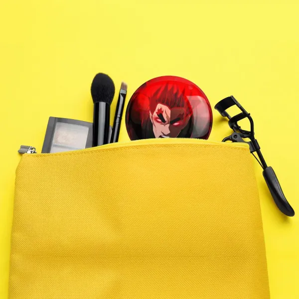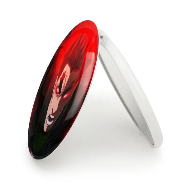 آینه های تاشو گای قدرتمند انیمه ناروتو Naruto خندالو، از جنس پلاستیک فشرده ABS تولید شده و به رنگ سفید می باشد. یکی از آینه ها ابعاد واقعی را نشان داده و دیگری با قابلیت بزرگنمایی، جزئیات را بهتر نمایش می دهد. ابعاد هر یک از آینه ها، دایره ای به قطر 7.5 سانت می باشد که نه خیلی بزرگ و غیر قابل استفاده در کیف آرایشی ست و نه خیلی کوچک که تصویر خاصی در آن مشاهده نشود. آینه تاشو گای قدرتمند انیمه ناروتو Naruto سایزی استاندارد و کارآمد دارد و در هر کیفی جا میگیرد. چاپ طرح بوسیله چاپگرهای دیجیتال شش رنگ با شفافیت و کیفیتی مثال زدنی بر روی یک وجه از بدنه ی آینه انجام گرفته و با روکش لمینت حرارتی پوشیده شده که در مقابل آسیب و خط و خش مقاوم بوده و کیفیت بالایی دارد. درب آینه بوسیله قفل بدنه ی آن، باز نمی ماند و کاملا بسته می شود و مناسب قرار گیری در کیف لوازم آرایش و کیف های کوچک دستی نیز هست. آینه های تاشو گای قدرتمند انیمه ناروتو Naruto خندالو با تنوع طرحی بسیار بالا، سلیقه هر نوع مخاطبی را تامین میکند.