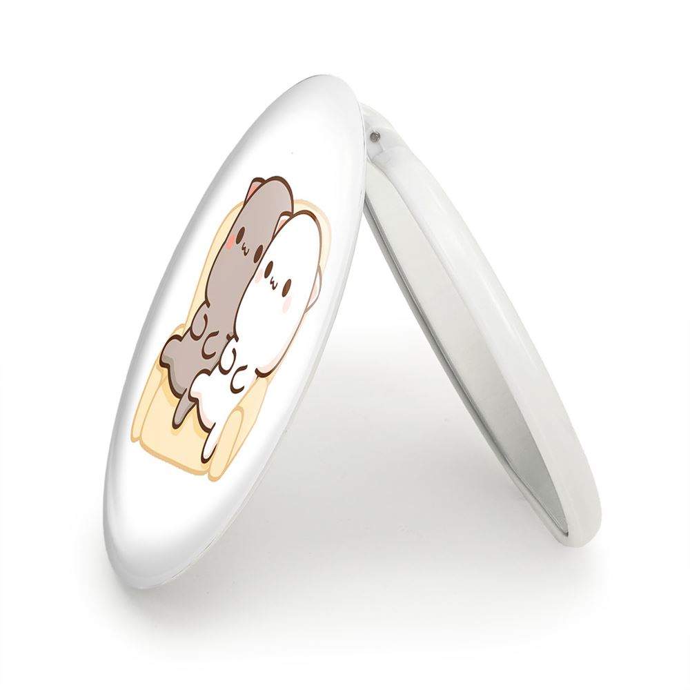 آینه های تاشو گربه های بامزه خندالو، از جنس پلاستیک فشرده ABS تولید شده و به رنگ سفید می باشد. یکی از آینه ها ابعاد واقعی را نشان داده و دیگری با قابلیت بزرگنمایی، جزئیات را بهتر نمایش می دهد. ابعاد هر یک از آینه ها، دایره ای به قطر 7.5 سانت می باشد که نه خیلی بزرگ و غیر قابل استفاده در کیف آرایشی ست و نه خیلی کوچک که تصویر خاصی در آن مشاهده نشود. آینه تاشو گربه های بامزه سایزی استاندارد و کارآمد دارد و در هر کیفی جا میگیرد. چاپ طرح بوسیله چاپگرهای دیجیتال شش رنگ با شفافیت و کیفیتی مثال زدنی بر روی یک وجه از بدنه ی آینه انجام گرفته و با روکش لمینت حرارتی پوشیده شده که در مقابل آسیب و خط و خش مقاوم بوده و کیفیت بالایی دارد. درب آینه بوسیله قفل بدنه ی آن، باز نمی ماند و کاملا بسته می شود و مناسب قرار گیری در کیف لوازم آرایش و کیف های کوچک دستی نیز هست. آینه های تاشو گربه های بامزه خندالو با تنوع طرحی بسیار بالا، سلیقه هر نوع مخاطبی را تامین میکند.