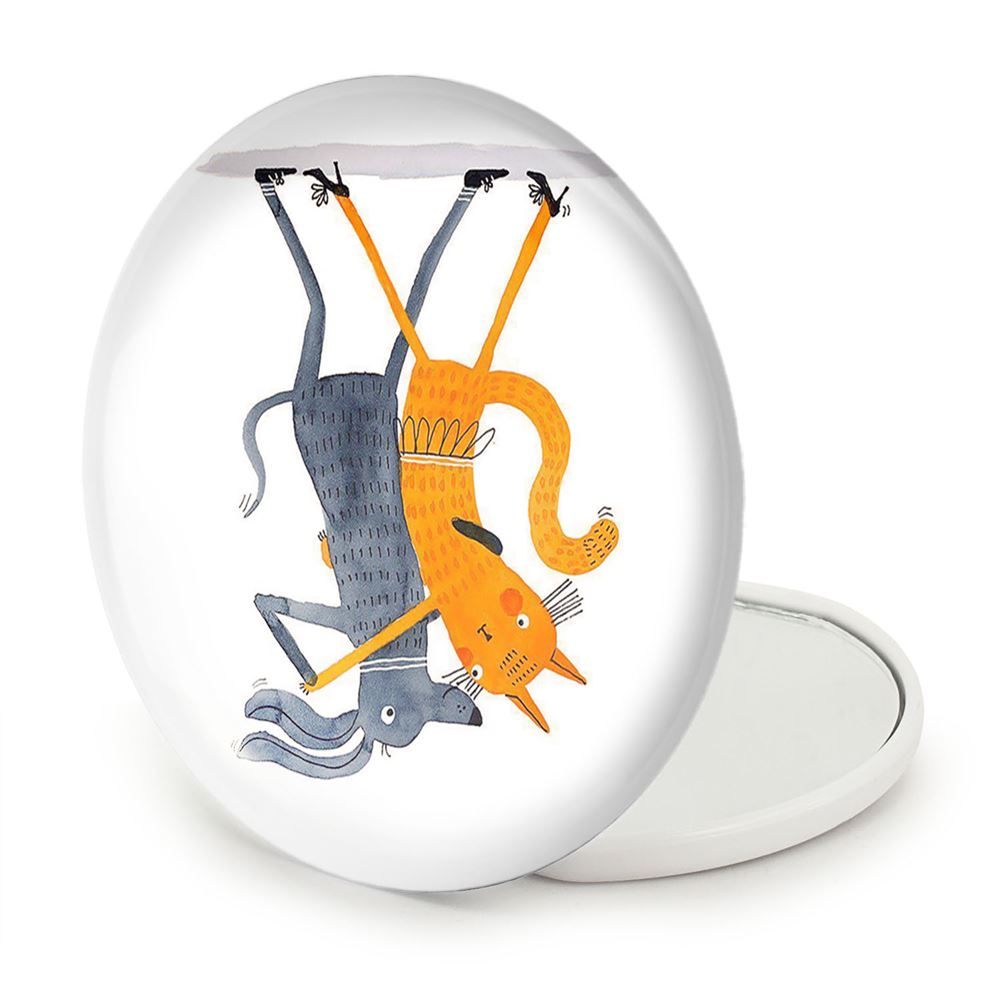 آینه های تاشو گربه و سگ خندالو، از جنس پلاستیک فشرده ABS تولید شده و به رنگ سفید می باشد. یکی از آینه ها ابعاد واقعی را نشان داده و دیگری با قابلیت بزرگنمایی، جزئیات را بهتر نمایش می دهد.