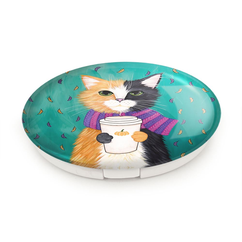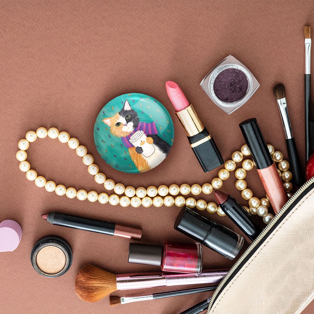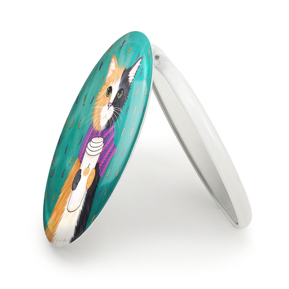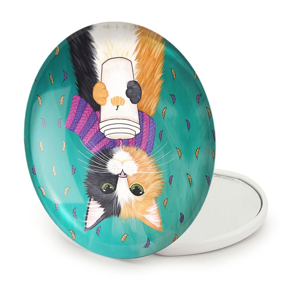 آینه های تاشو گربه خندالو، از جنس پلاستیک فشرده ABS تولید شده و به رنگ سفید می باشد. یکی از آینه ها ابعاد واقعی را نشان داده و دیگری با قابلیت بزرگنمایی، جزئیات را بهتر نمایش می دهد. ابعاد هر یک از آینه ها، دایره ای به قطر 7.5 سانت می باشد که نه خیلی بزرگ و غیر قابل استفاده در کیف آرایشی ست و نه خیلی کوچک که تصویر خاصی در آن مشاهده نشود. آینه تاشو گربه سایزی استاندارد و کارآمد دارد و در هر کیفی جا میگیرد. چاپ طرح بوسیله چاپگرهای دیجیتال شش رنگ با شفافیت و کیفیتی مثال زدنی بر روی یک وجه از بدنه ی آینه انجام گرفته و با روکش لمینت حرارتی پوشیده شده که در مقابل آسیب و خط و خش مقاوم بوده و کیفیت بالایی دارد. درب آینه بوسیله قفل بدنه ی آن، باز نمی ماند و کاملا بسته می شود و مناسب قرار گیری در کیف لوازم آرایش و کیف های کوچک دستی نیز هست. آینه های تاشو گربه خندالو با تنوع طرحی بسیار بالا، سلیقه هر نوع مخاطبی را تامین میکند.