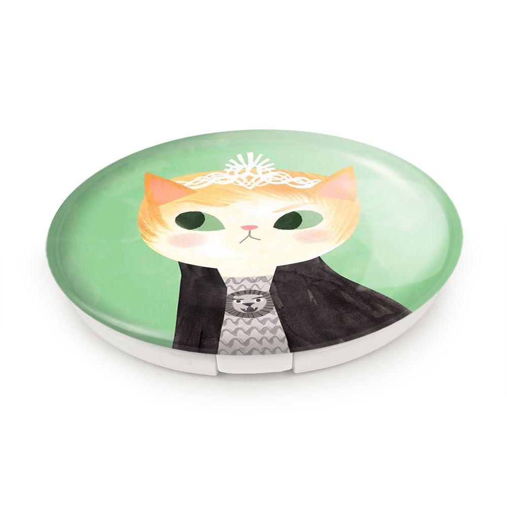 آینه های تاشو گربه خندالو، از جنس پلاستیک فشرده ABS تولید شده و به رنگ سفید می باشد. یکی از آینه ها ابعاد واقعی را نشان داده و دیگری با قابلیت بزرگنمایی، جزئیات را بهتر نمایش می دهد.