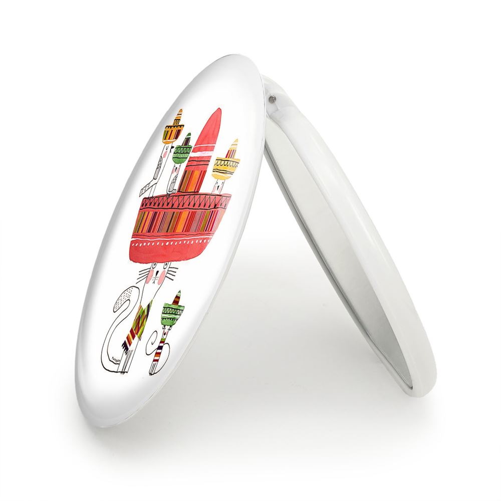 آینه های تاشو گربه خندالو، از جنس پلاستیک فشرده ABS تولید شده و به رنگ سفید می باشد. یکی از آینه ها ابعاد واقعی را نشان داده و دیگری با قابلیت بزرگنمایی، جزئیات را بهتر نمایش می دهد.