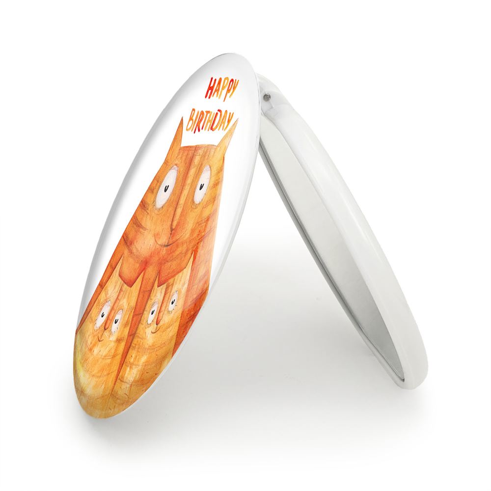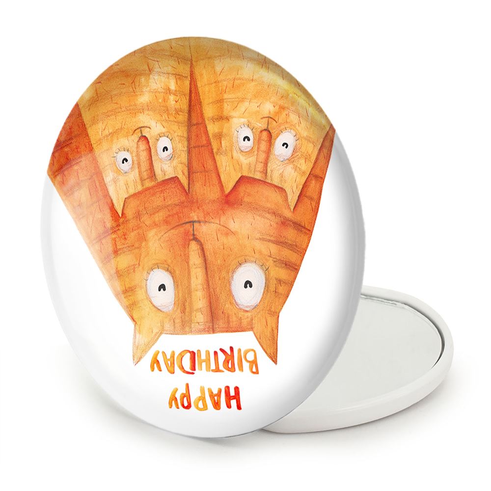 آینه های تاشو گربه خندالو، از جنس پلاستیک فشرده ABS تولید شده و به رنگ سفید می باشد. یکی از آینه ها ابعاد واقعی را نشان داده و دیگری با قابلیت بزرگنمایی، جزئیات را بهتر نمایش می دهد.