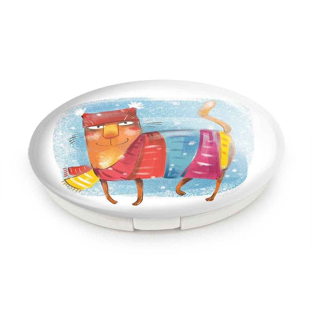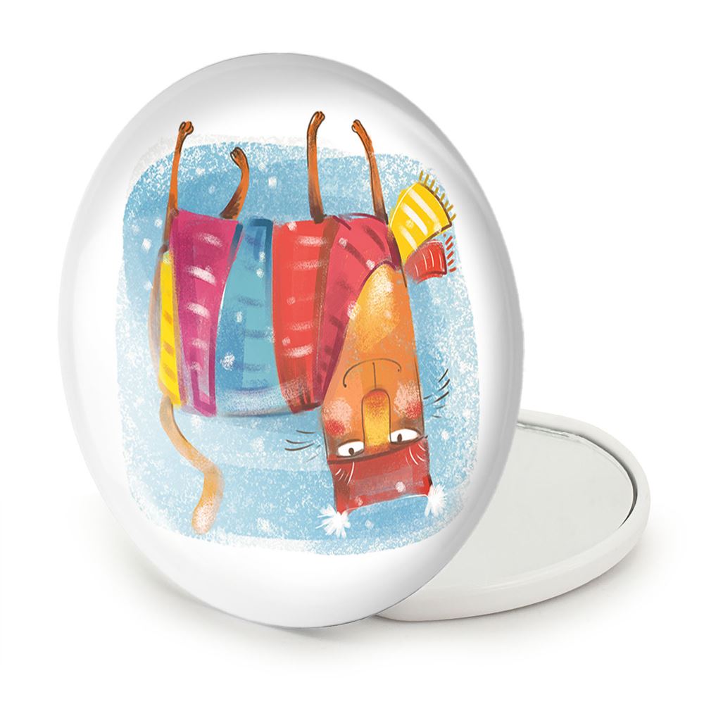 آینه های تاشو گربه خندالو، از جنس پلاستیک فشرده ABS تولید شده و به رنگ سفید می باشد. یکی از آینه ها ابعاد واقعی را نشان داده و دیگری با قابلیت بزرگنمایی، جزئیات را بهتر نمایش می دهد.