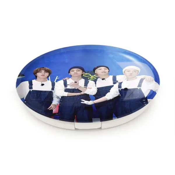 آینه های تاشو گروه بی تی اس BTS خندالو، از جنس پلاستیک فشرده ABS تولید شده و به رنگ سفید می باشد. یکی از آینه ها ابعاد واقعی را نشان داده و دیگری با قابلیت بزرگنمایی، جزئیات را بهتر نمایش می دهد.