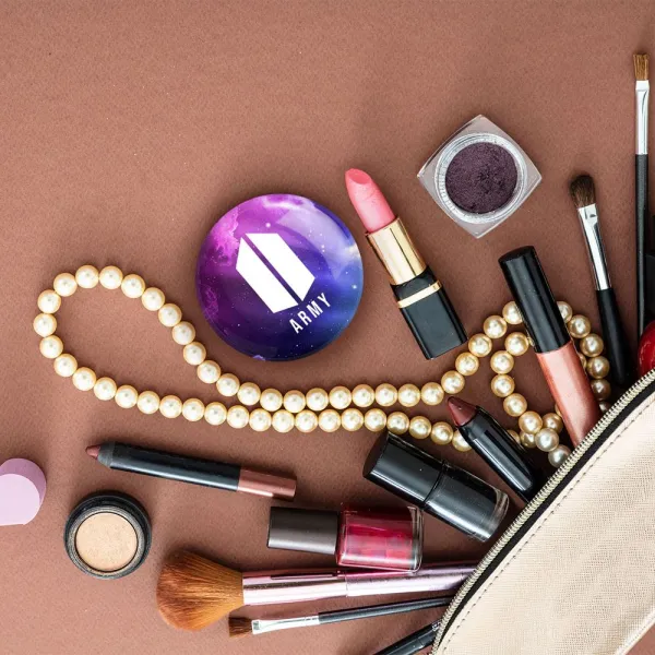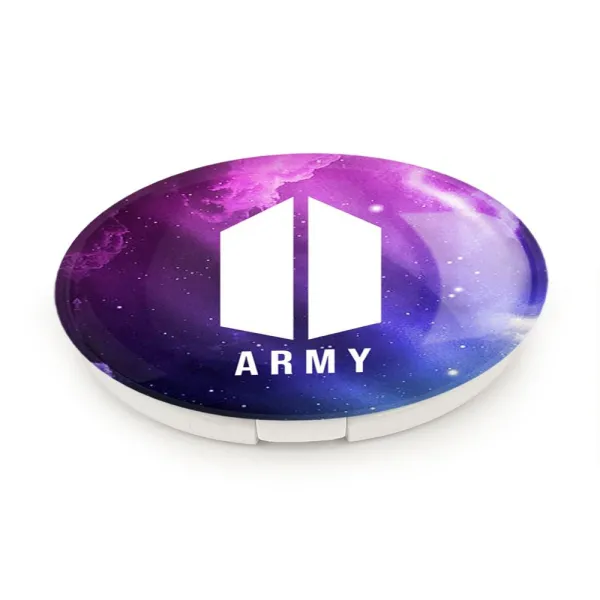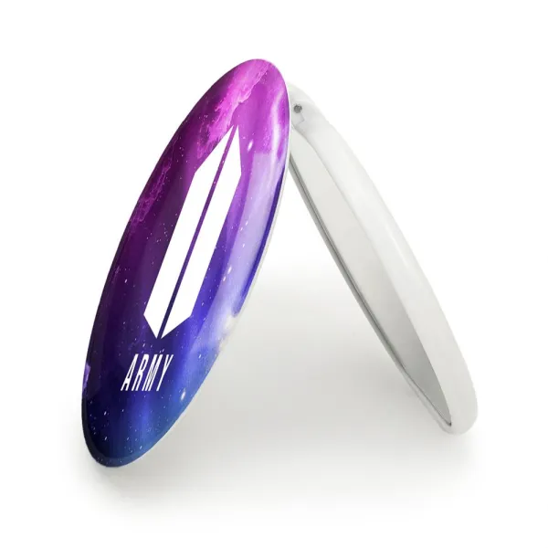 آینه های تاشو گروه بی تی اس BTS خندالو، از جنس پلاستیک فشرده ABS تولید شده و به رنگ سفید می باشد. یکی از آینه ها ابعاد واقعی را نشان داده و دیگری با قابلیت بزرگنمایی، جزئیات را بهتر نمایش می دهد.