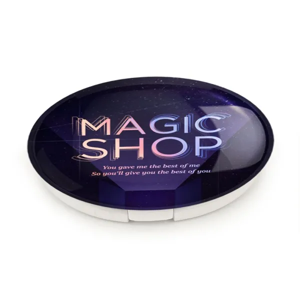 آینه های تاشو گروه بی تی اس BTS خندالو، از جنس پلاستیک فشرده ABS تولید شده و به رنگ سفید می باشد. یکی از آینه ها ابعاد واقعی را نشان داده و دیگری با قابلیت بزرگنمایی، جزئیات را بهتر نمایش می دهد.