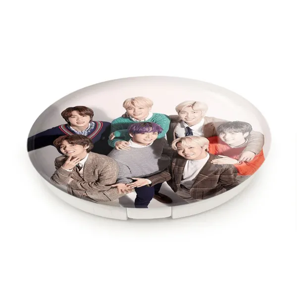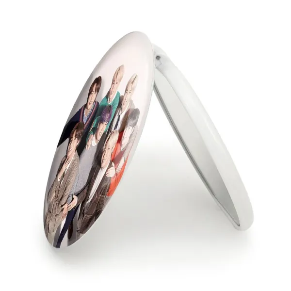 آینه های تاشو گروه بی تی اس BTS خندالو، از جنس پلاستیک فشرده ABS تولید شده و به رنگ سفید می باشد. یکی از آینه ها ابعاد واقعی را نشان داده و دیگری با قابلیت بزرگنمایی، جزئیات را بهتر نمایش می دهد.