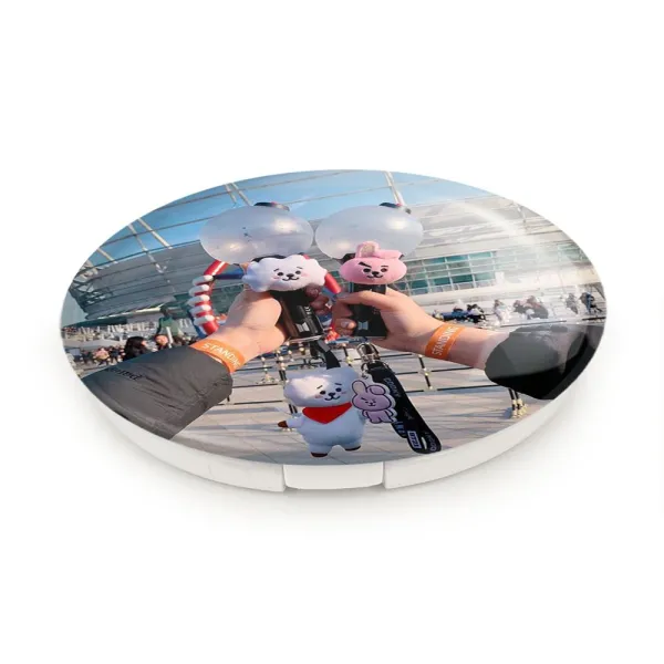 آینه های تاشو گروه بی تی اس BTS خندالو، از جنس پلاستیک فشرده ABS تولید شده و به رنگ سفید می باشد. یکی از آینه ها ابعاد واقعی را نشان داده و دیگری با قابلیت بزرگنمایی، جزئیات را بهتر نمایش می دهد.