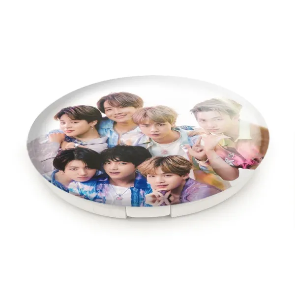 آینه های تاشو گروه بی تی اس BTS خندالو، از جنس پلاستیک فشرده ABS تولید شده و به رنگ سفید می باشد. یکی از آینه ها ابعاد واقعی را نشان داده و دیگری با قابلیت بزرگنمایی، جزئیات را بهتر نمایش می دهد.