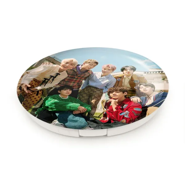 آینه های تاشو گروه بی تی اس BTS خندالو، از جنس پلاستیک فشرده ABS تولید شده و به رنگ سفید می باشد. یکی از آینه ها ابعاد واقعی را نشان داده و دیگری با قابلیت بزرگنمایی، جزئیات را بهتر نمایش می دهد.