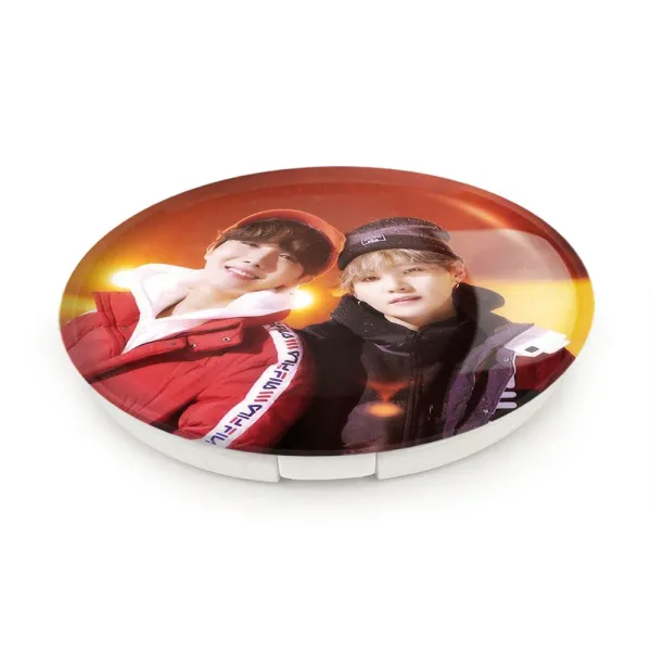 آینه های تاشو گروه بی تی اس BTS خندالو، از جنس پلاستیک فشرده ABS تولید شده و به رنگ سفید می باشد. یکی از آینه ها ابعاد واقعی را نشان داده و دیگری با قابلیت بزرگنمایی، جزئیات را بهتر نمایش می دهد.