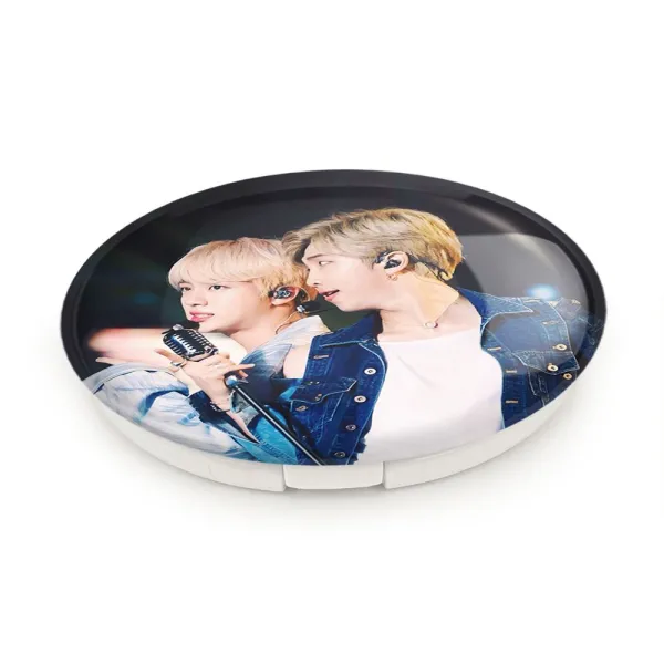 آینه های تاشو گروه بی تی اس BTS خندالو، از جنس پلاستیک فشرده ABS تولید شده و به رنگ سفید می باشد. یکی از آینه ها ابعاد واقعی را نشان داده و دیگری با قابلیت بزرگنمایی، جزئیات را بهتر نمایش می دهد.