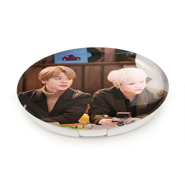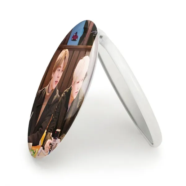 آینه های تاشو گروه بی تی اس BTS خندالو، از جنس پلاستیک فشرده ABS تولید شده و به رنگ سفید می باشد. یکی از آینه ها ابعاد واقعی را نشان داده و دیگری با قابلیت بزرگنمایی، جزئیات را بهتر نمایش می دهد.
