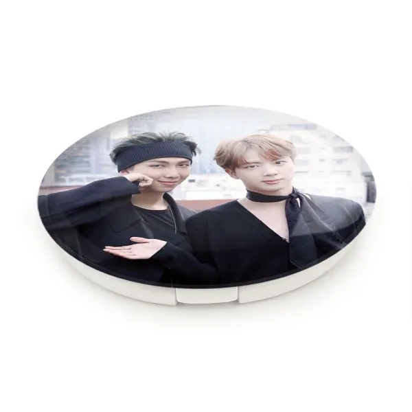آینه های تاشو گروه بی تی اس BTS خندالو، از جنس پلاستیک فشرده ABS تولید شده و به رنگ سفید می باشد. یکی از آینه ها ابعاد واقعی را نشان داده و دیگری با قابلیت بزرگنمایی، جزئیات را بهتر نمایش می دهد.