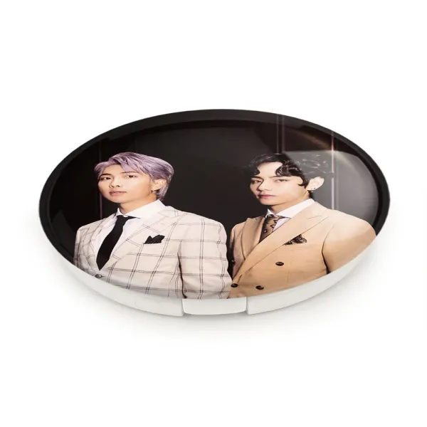 آینه های تاشو گروه بی تی اس BTS خندالو، از جنس پلاستیک فشرده ABS تولید شده و به رنگ سفید می باشد. یکی از آینه ها ابعاد واقعی را نشان داده و دیگری با قابلیت بزرگنمایی، جزئیات را بهتر نمایش می دهد.