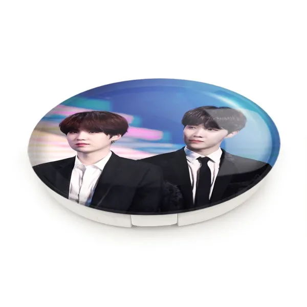 آینه های تاشو گروه بی تی اس BTS خندالو، از جنس پلاستیک فشرده ABS تولید شده و به رنگ سفید می باشد. یکی از آینه ها ابعاد واقعی را نشان داده و دیگری با قابلیت بزرگنمایی، جزئیات را بهتر نمایش می دهد.