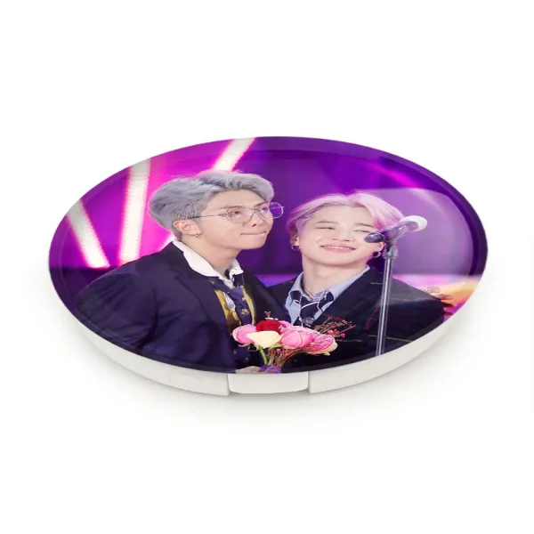 آینه های تاشو گروه بی تی اس BTS خندالو، از جنس پلاستیک فشرده ABS تولید شده و به رنگ سفید می باشد. یکی از آینه ها ابعاد واقعی را نشان داده و دیگری با قابلیت بزرگنمایی، جزئیات را بهتر نمایش می دهد.