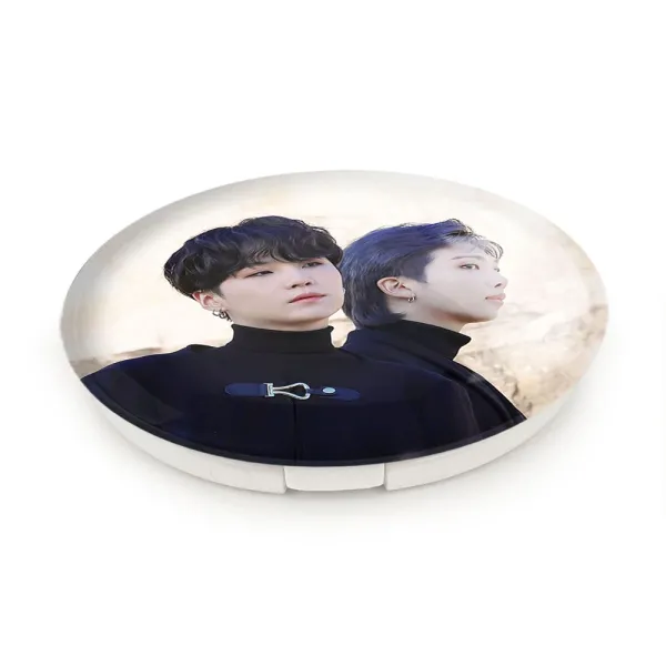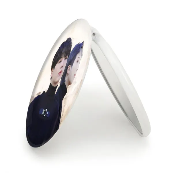 آینه های تاشو گروه بی تی اس BTS خندالو، از جنس پلاستیک فشرده ABS تولید شده و به رنگ سفید می باشد. یکی از آینه ها ابعاد واقعی را نشان داده و دیگری با قابلیت بزرگنمایی، جزئیات را بهتر نمایش می دهد.