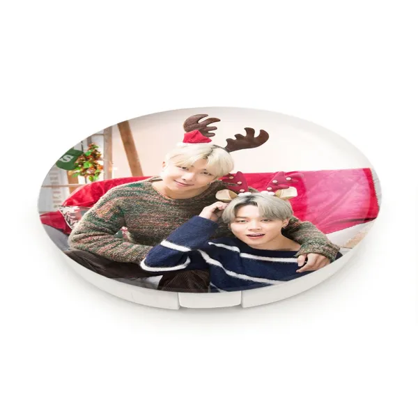 آینه های تاشو گروه بی تی اس BTS خندالو، از جنس پلاستیک فشرده ABS تولید شده و به رنگ سفید می باشد. یکی از آینه ها ابعاد واقعی را نشان داده و دیگری با قابلیت بزرگنمایی، جزئیات را بهتر نمایش می دهد.