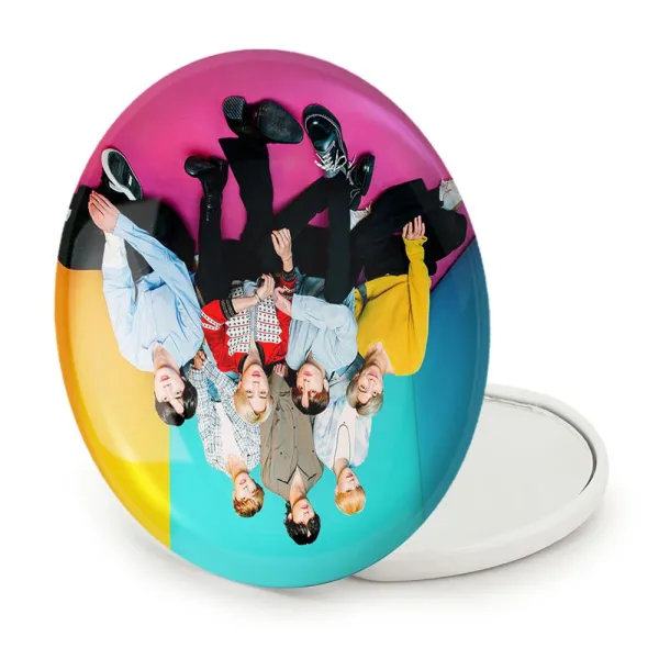 آینه های تاشو گروه بی تی اس BTS خندالو، از جنس پلاستیک فشرده ABS تولید شده و به رنگ سفید می باشد. یکی از آینه ها ابعاد واقعی را نشان داده و دیگری با قابلیت بزرگنمایی، جزئیات را بهتر نمایش می دهد.