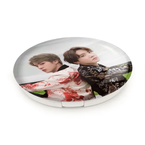 آینه های تاشو گروه بی تی اس BTS خندالو، از جنس پلاستیک فشرده ABS تولید شده و به رنگ سفید می باشد. یکی از آینه ها ابعاد واقعی را نشان داده و دیگری با قابلیت بزرگنمایی، جزئیات را بهتر نمایش می دهد.