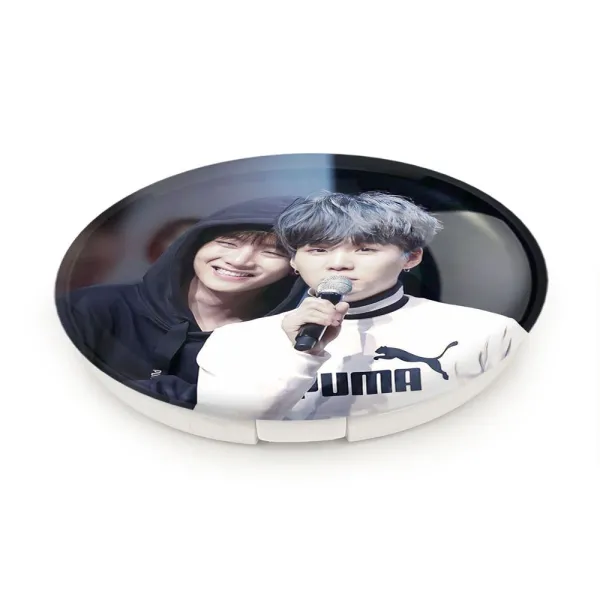 آینه های تاشو گروه بی تی اس BTS خندالو، از جنس پلاستیک فشرده ABS تولید شده و به رنگ سفید می باشد. یکی از آینه ها ابعاد واقعی را نشان داده و دیگری با قابلیت بزرگنمایی، جزئیات را بهتر نمایش می دهد.