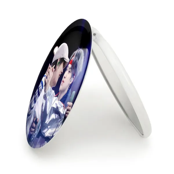 آینه های تاشو گروه بی تی اس BTS خندالو، از جنس پلاستیک فشرده ABS تولید شده و به رنگ سفید می باشد. یکی از آینه ها ابعاد واقعی را نشان داده و دیگری با قابلیت بزرگنمایی، جزئیات را بهتر نمایش می دهد.