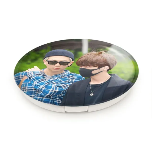 آینه های تاشو گروه بی تی اس BTS خندالو، از جنس پلاستیک فشرده ABS تولید شده و به رنگ سفید می باشد. یکی از آینه ها ابعاد واقعی را نشان داده و دیگری با قابلیت بزرگنمایی، جزئیات را بهتر نمایش می دهد.