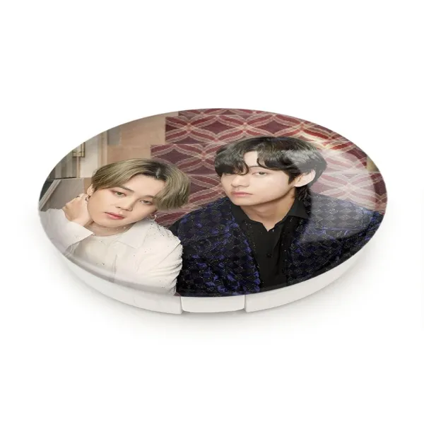 آینه های تاشو گروه بی تی اس BTS خندالو، از جنس پلاستیک فشرده ABS تولید شده و به رنگ سفید می باشد. یکی از آینه ها ابعاد واقعی را نشان داده و دیگری با قابلیت بزرگنمایی، جزئیات را بهتر نمایش می دهد.