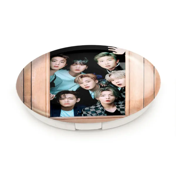 آینه های تاشو گروه بی تی اس BTS خندالو، از جنس پلاستیک فشرده ABS تولید شده و به رنگ سفید می باشد. یکی از آینه ها ابعاد واقعی را نشان داده و دیگری با قابلیت بزرگنمایی، جزئیات را بهتر نمایش می دهد.