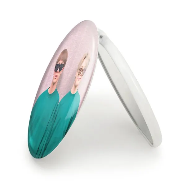 آینه های تاشو گروه بی تی اس BTS خندالو، از جنس پلاستیک فشرده ABS تولید شده و به رنگ سفید می باشد. یکی از آینه ها ابعاد واقعی را نشان داده و دیگری با قابلیت بزرگنمایی، جزئیات را بهتر نمایش می دهد.