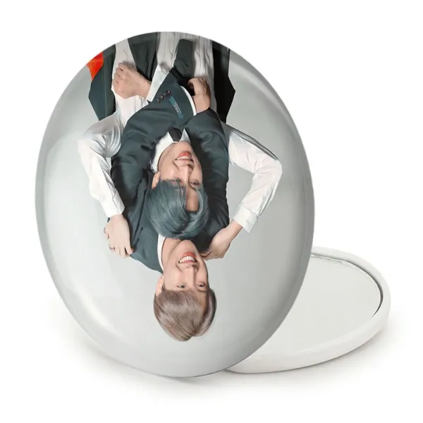 آینه های تاشو گروه بی تی اس BTS خندالو، از جنس پلاستیک فشرده ABS تولید شده و به رنگ سفید می باشد. یکی از آینه ها ابعاد واقعی را نشان داده و دیگری با قابلیت بزرگنمایی، جزئیات را بهتر نمایش می دهد.