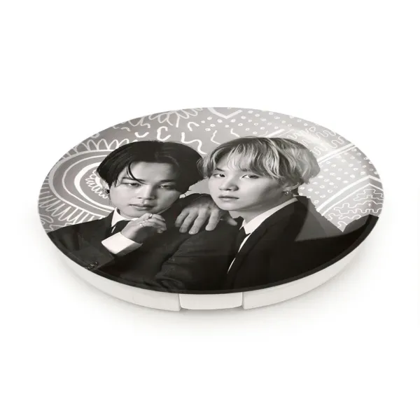 آینه های تاشو گروه بی تی اس BTS خندالو، از جنس پلاستیک فشرده ABS تولید شده و به رنگ سفید می باشد. یکی از آینه ها ابعاد واقعی را نشان داده و دیگری با قابلیت بزرگنمایی، جزئیات را بهتر نمایش می دهد.