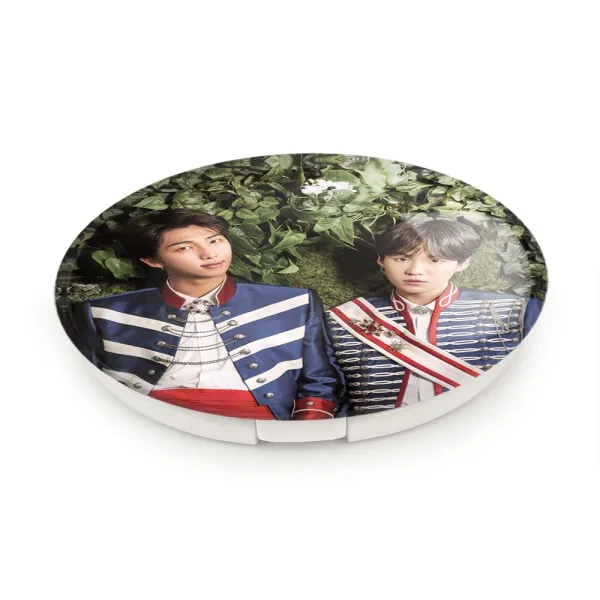 آینه های تاشو گروه بی تی اس BTS خندالو، از جنس پلاستیک فشرده ABS تولید شده و به رنگ سفید می باشد. یکی از آینه ها ابعاد واقعی را نشان داده و دیگری با قابلیت بزرگنمایی، جزئیات را بهتر نمایش می دهد.
