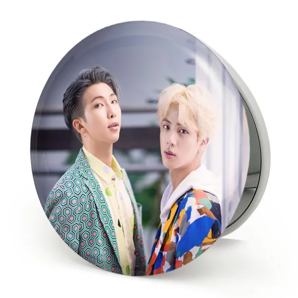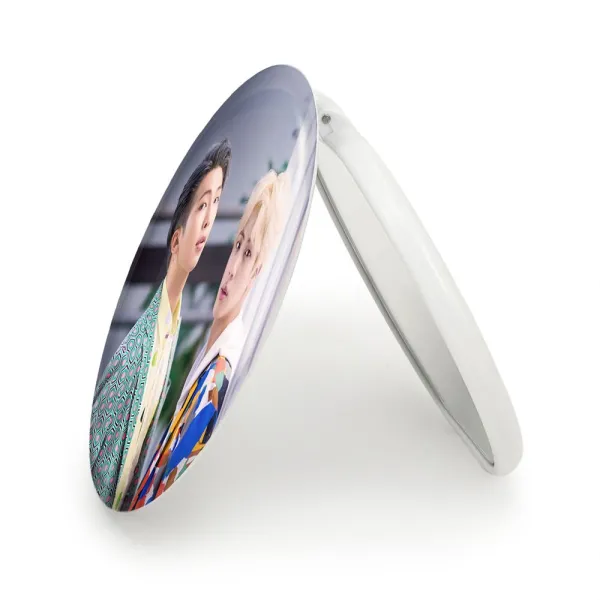 آینه های تاشو گروه بی تی اس BTS خندالو، از جنس پلاستیک فشرده ABS تولید شده و به رنگ سفید می باشد. یکی از آینه ها ابعاد واقعی را نشان داده و دیگری با قابلیت بزرگنمایی، جزئیات را بهتر نمایش می دهد.