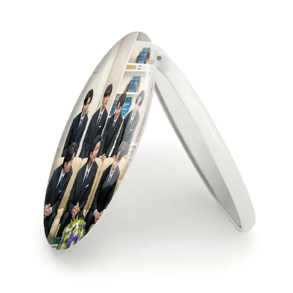 آینه های تاشو گروه بی تی اس BTS خندالو، از جنس پلاستیک فشرده ABS تولید شده و به رنگ سفید می باشد. یکی از آینه ها ابعاد واقعی را نشان داده و دیگری با قابلیت بزرگنمایی، جزئیات را بهتر نمایش می دهد.