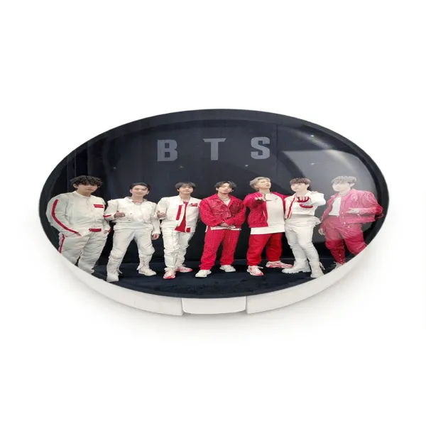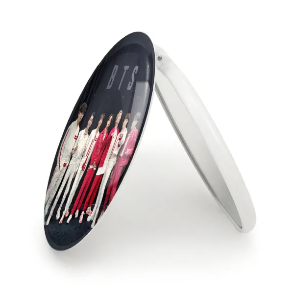 آینه های تاشو گروه بی تی اس BTS خندالو، از جنس پلاستیک فشرده ABS تولید شده و به رنگ سفید می باشد. یکی از آینه ها ابعاد واقعی را نشان داده و دیگری با قابلیت بزرگنمایی، جزئیات را بهتر نمایش می دهد.
