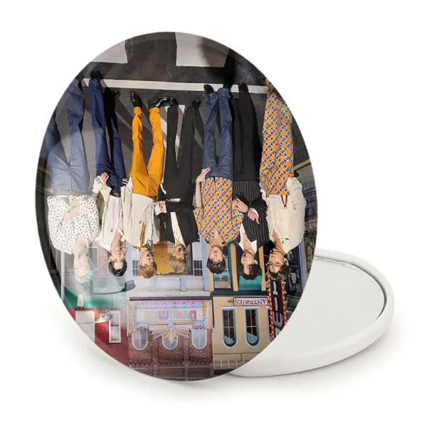 آینه های تاشو گروه بی تی اس BTS خندالو، از جنس پلاستیک فشرده ABS تولید شده و به رنگ سفید می باشد. یکی از آینه ها ابعاد واقعی را نشان داده و دیگری با قابلیت بزرگنمایی، جزئیات را بهتر نمایش می دهد.