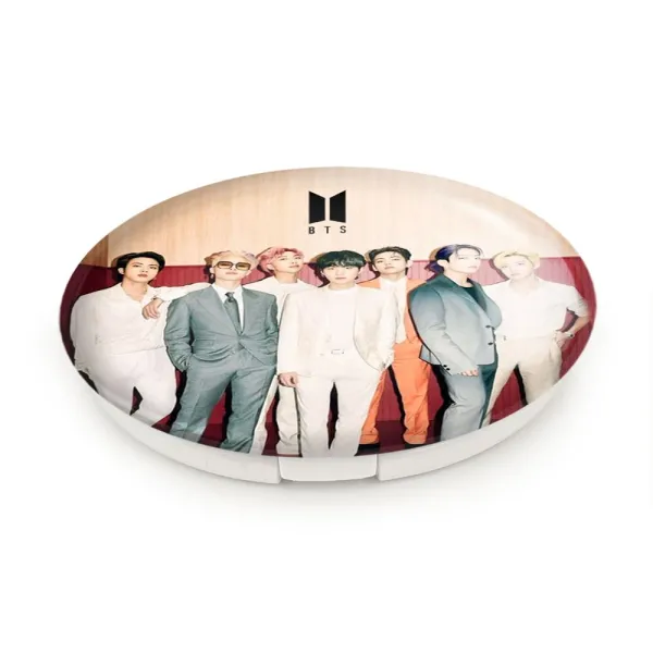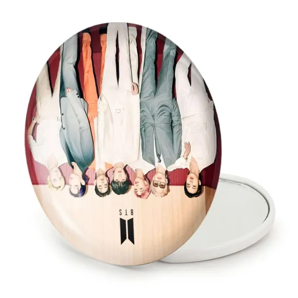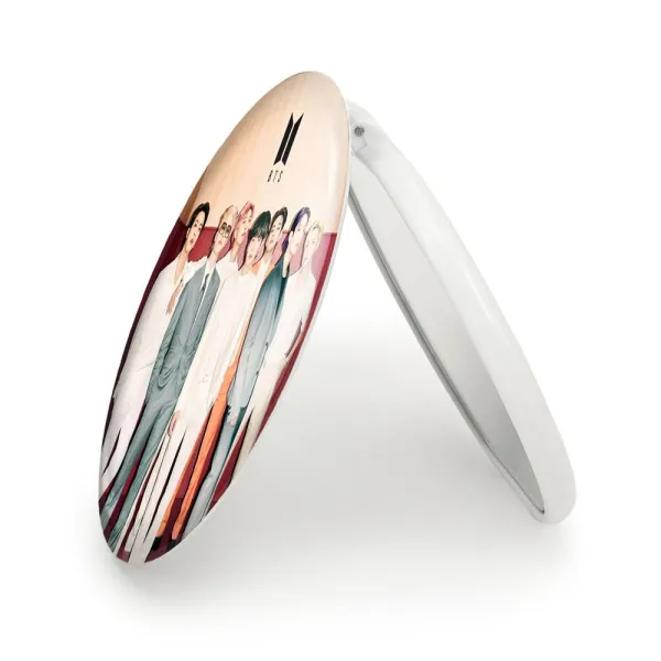آینه های تاشو گروه بی تی اس BTS خندالو، از جنس پلاستیک فشرده ABS تولید شده و به رنگ سفید می باشد. یکی از آینه ها ابعاد واقعی را نشان داده و دیگری با قابلیت بزرگنمایی، جزئیات را بهتر نمایش می دهد.