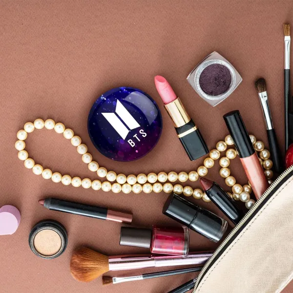 آینه های تاشو گروه بی تی اس BTS خندالو، از جنس پلاستیک فشرده ABS تولید شده و به رنگ سفید می باشد. یکی از آینه ها ابعاد واقعی را نشان داده و دیگری با قابلیت بزرگنمایی، جزئیات را بهتر نمایش می دهد.