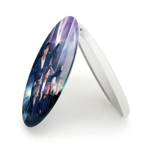 آینه های تاشو گروه بی تی اس BTS خندالو، از جنس پلاستیک فشرده ABS تولید شده و به رنگ سفید می باشد. یکی از آینه ها ابعاد واقعی را نشان داده و دیگری با قابلیت بزرگنمایی، جزئیات را بهتر نمایش می دهد.
