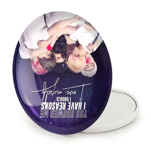 آینه های تاشو گروه بی تی اس BTS خندالو، از جنس پلاستیک فشرده ABS تولید شده و به رنگ سفید می باشد. یکی از آینه ها ابعاد واقعی را نشان داده و دیگری با قابلیت بزرگنمایی، جزئیات را بهتر نمایش می دهد.
